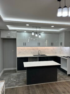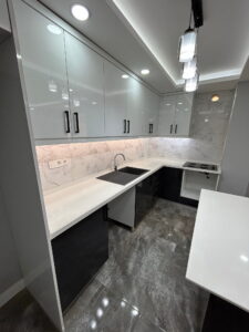 Cem Bey’in Pendik’teki dairesinde yer alan mutfak ve banyo alanları, kullanıcı alışkanlıklarına ve modern tasarım anlayışına göre yeniden planlandı. Proje, kısa sürede şık ve fonksiyonel çözümlerle tamamlandı.