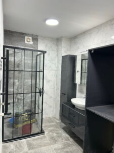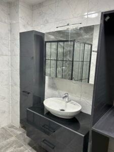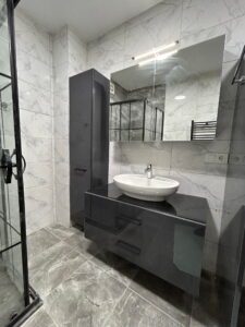 - Banyo alanında komple yenileme: duşakabin, klozet, lavabo ve dolap