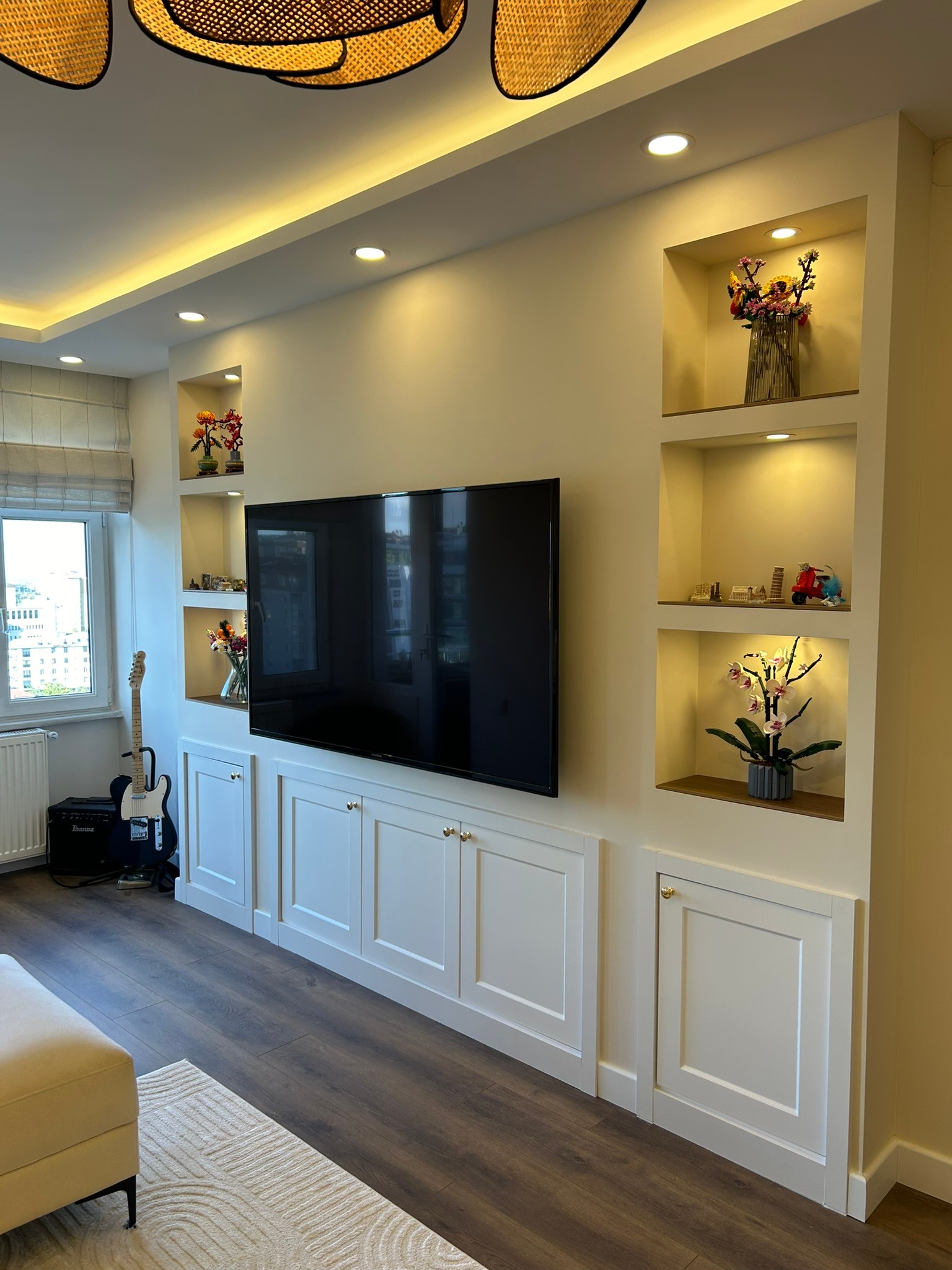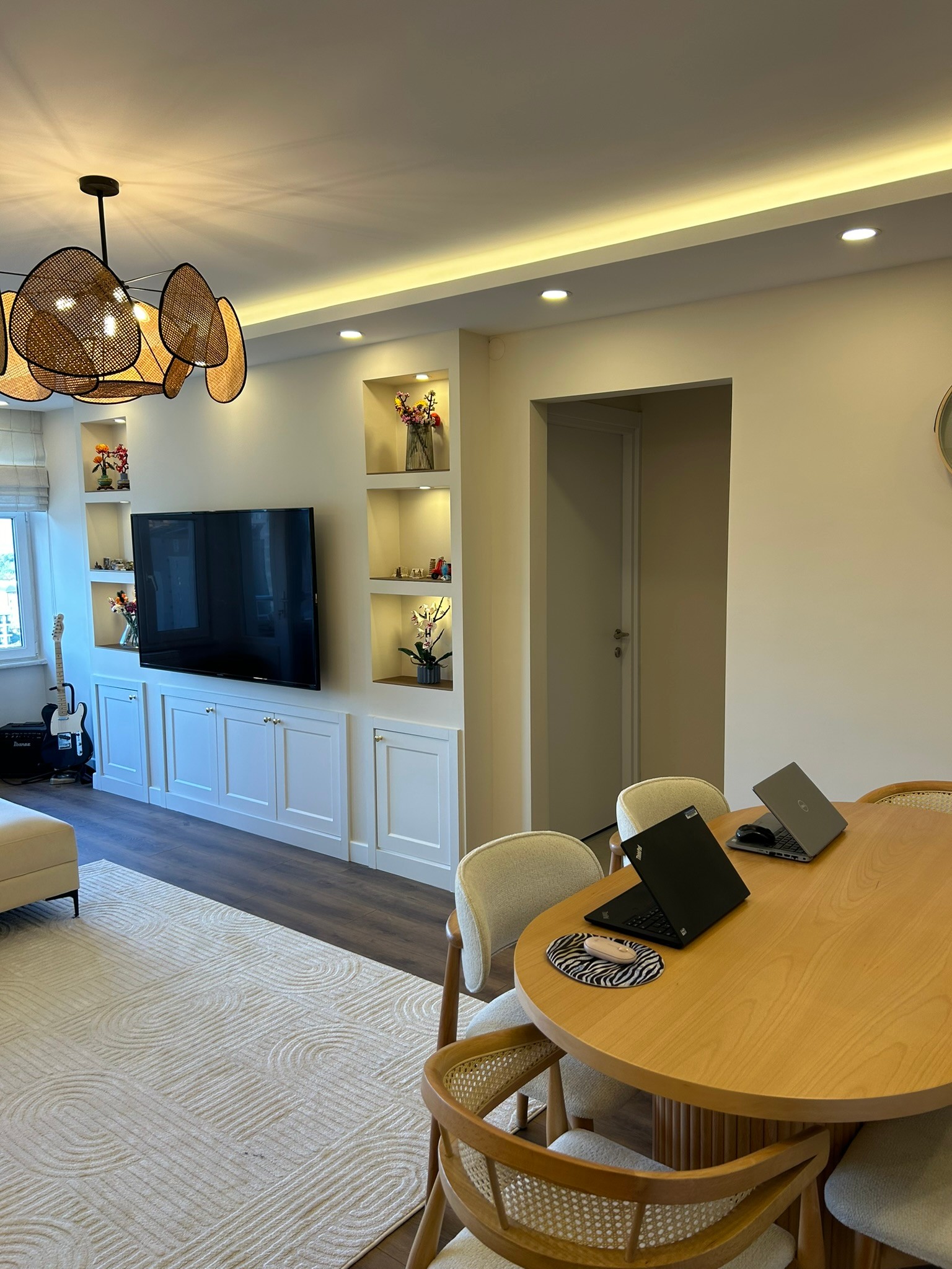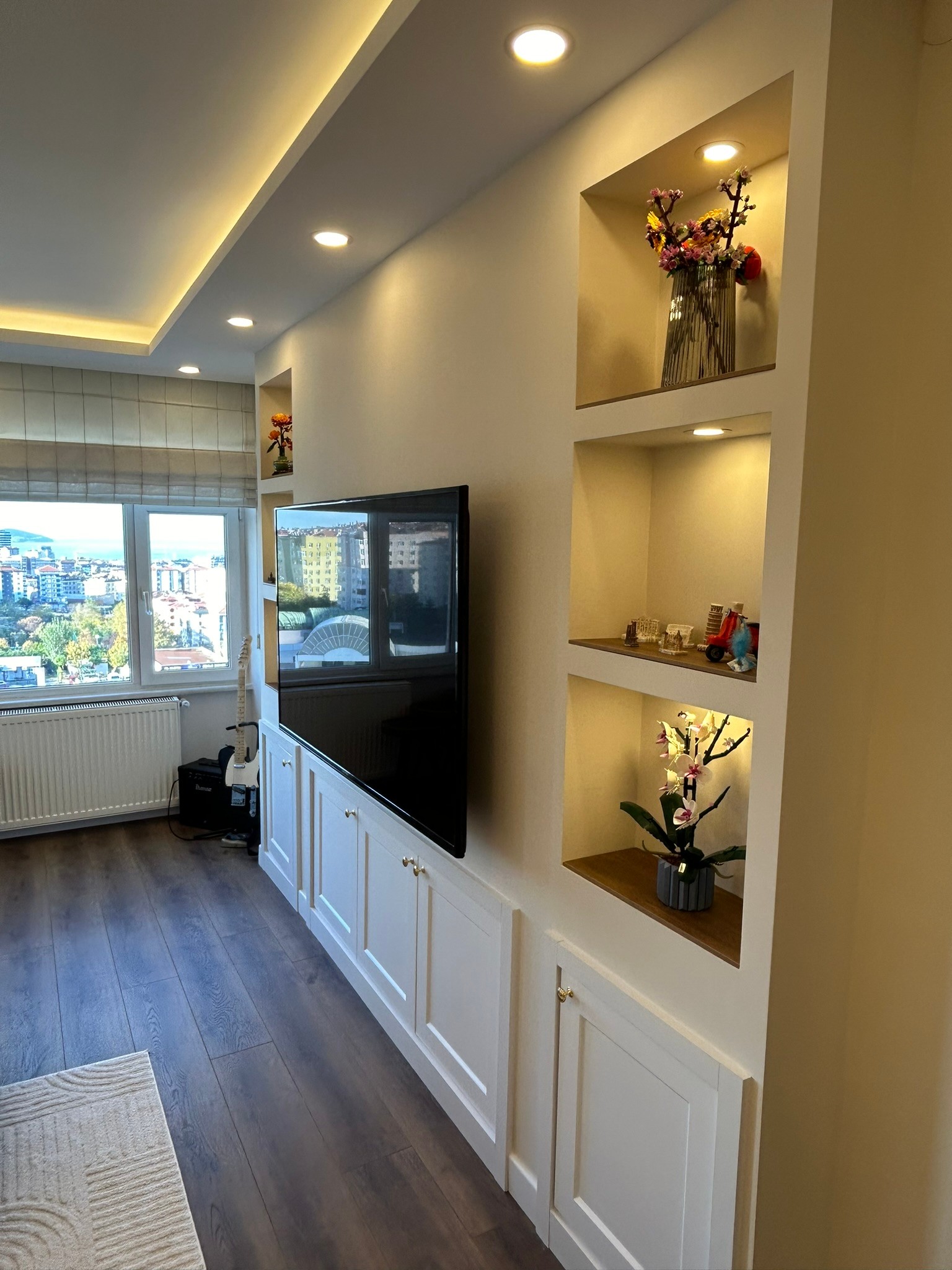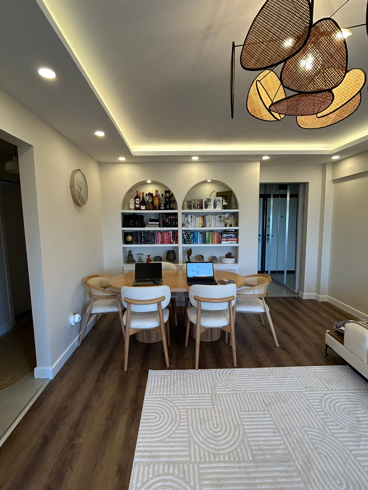 Anıl Bey’in Maltepe’deki dairesi, baştan sona yenilenerek modern bir yaşam alanına dönüştürüldü. Gönye Mimarlık olarak yaşam konforunu artıran, estetik ve işlevsel çözümler sunduğumuz bu projede; zeminlerden tavana, mutfaktan banyoya tüm detaylar özenle ele alındı.