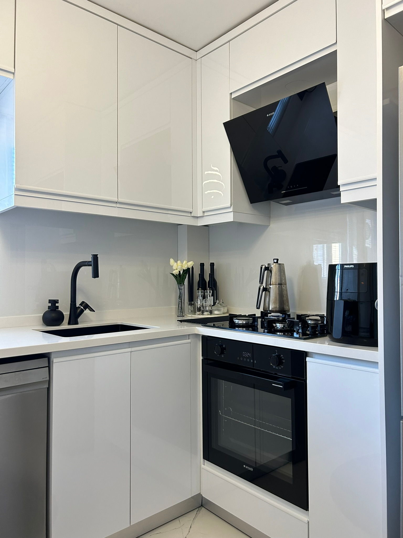 • Mutfakta özel üretim modüler sistem ve LED alt dolap aydınlatmaları