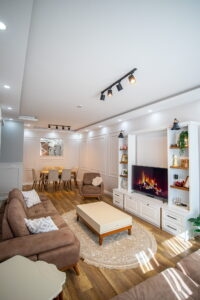 Tasarım dili sade ama zengin detaylarla desteklendi. Geniş metrekareli yaşam alanı, açık tonlar ve sıcak dokularla daha da ferah hale getirildi. Malzeme seçiminde uzun ömür, bakım kolaylığı ve zamansız görünüm ön planda tutuldu. Proje süresi 5 hafta içinde başarıyla tamamlandı.