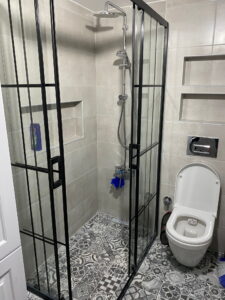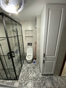 - Banyo alanında tam kaplama seramik, niş ve duş sistemleri